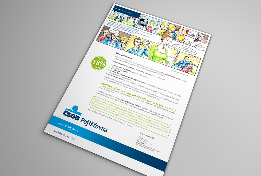 ČSOB Pojišťovna patří mezi přední pojišťovny u nás. Dlouhodobě se nám daří připravovat a obhajovat kreativní řešení stěžejních kampaní, POS materiálů, direct mailingů, inzerce, stojanů, plakátů, samolepek, billboardů, radiospotů, materiálů pro interní komunikaci atd. Navrhujeme slogany kampaní, názvy produktů a kompletní copywriting. V rámci srovnání pojistných podmínek dle norem EU pro ženy a muže jsme připravili i SMS soutěž včetně celého technického zabezpečení. Dále vytváříme výroční logotypy, produktové logotypy – Specialisté na pojištění nebo logotyp extraligového hokejového klubu HC ČSOB Pojišťovna Pardubice. Výsledkem naší skvělé spolupráce je nejen budování brandu ČSOB Pojišťovny, ale i nejvyšší ocenění v soutěži Kalendář roku 2013 za propagační účin a hlavní ideu. K tomuto kalendáři jsme v setu připravili inzerci, plánovací kalendář, novoroční přání s obálkou a elektronické PF. Podívejte se…